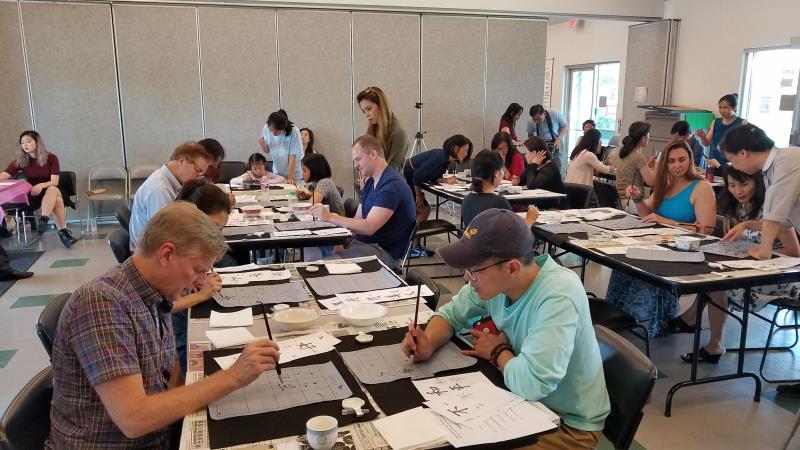 【明清撰稿】六千年文明,四千年书法。中国文化源远流长,不仅孕育了千年文人墨客的传世佳作,也折服了众多中外民众之心。五月十二日,由奥斯汀华裔联盟举办的 [中国书法] 讲座,就是中国书法艺术魅力的再现。当日下午,主讲人钟平正先生以其深厚的书法造诣,用短短的两小时,深入浅出地把中国文字艺术的风采展示在来宾面前。整个讲座采用中英双语,经过颇具英语底蕴的刘乙燕女士翻译,讲座呈现出一幅老少同台,中外言欢的感人画面。