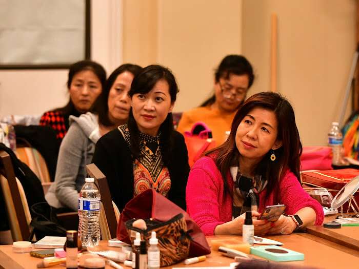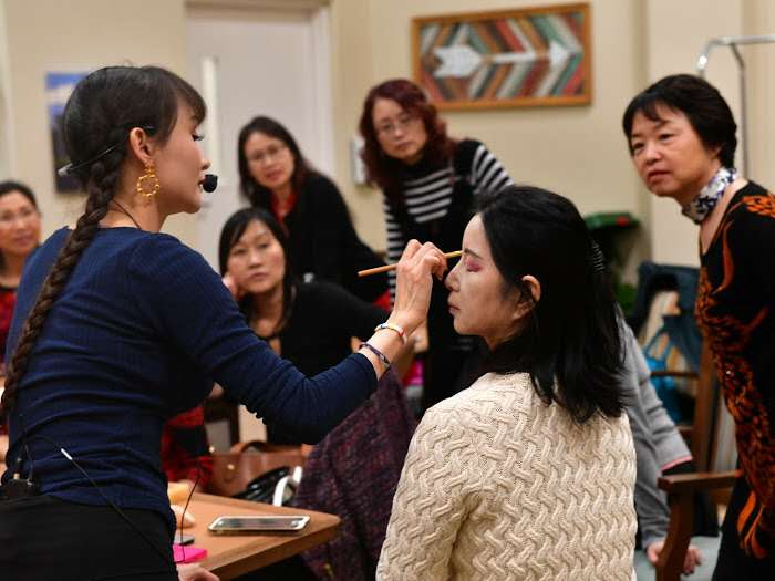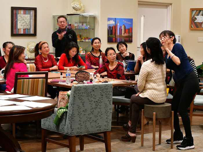 借你素颜凝脂,秀我巧手覆云。2月28日傍晚,奥斯汀华裔联盟艺术团化妆群群主林碧再次吹响集结号,20几位美女辣妈聚集在The Heritage at Hunters Chase老年中心活动室参加由唐莉莉(Liliya)主讲的舞台化妆讲座。