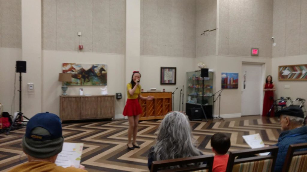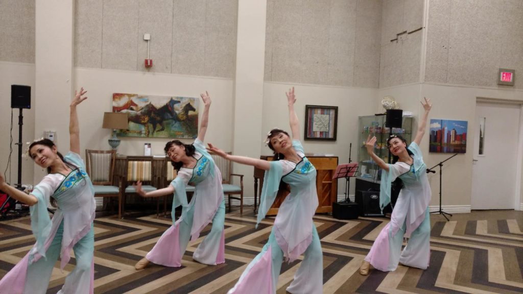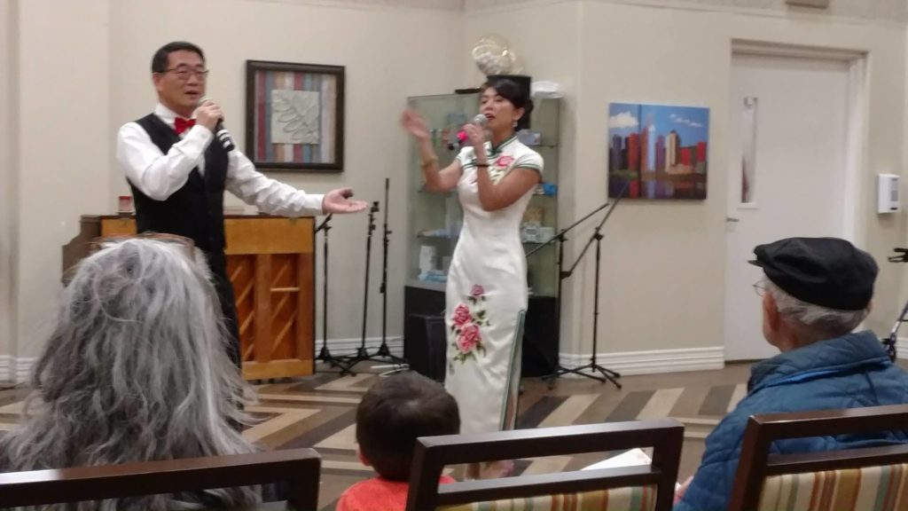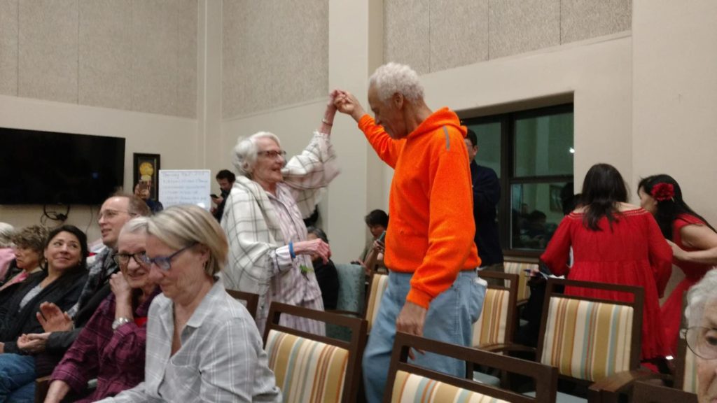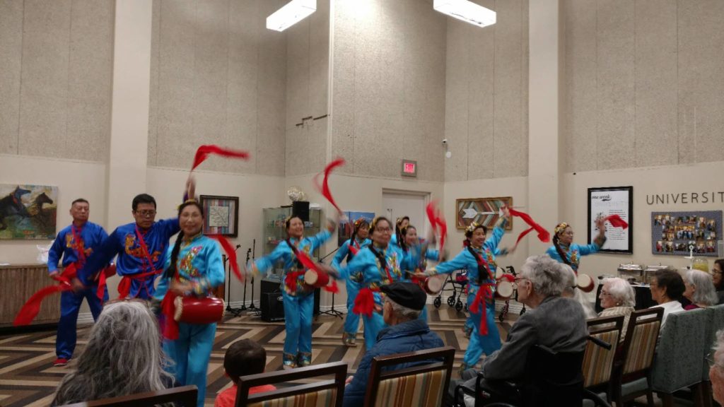 2/21周四的傍晚,伴随着欢快的腰鼓舞《开门红》,奥斯汀华盟Hunters Chase 老人院慰问演出在The Heritage at Hunters老人院热闹的拉开了序幕。随着一首首中外歌舞《恭喜发财》、《茉莉花》《Do Ray Mi》、《天边》、古典中国舞蹈《三生三世》 ,《雪絨花》《友誼地久天長》老人们的激情一点点被点燃,有的老人在自己的座位上就忍不住跟着演员们的动作手舞足蹈。当《 La Spagnola 美麗的西班牙女郎》响起时,一位穿桔黄色T恤的老人家,再也坐不住了,一把拉起了旁边的老太太在歌声中翩翩起舞。