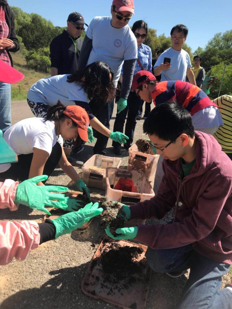由于花种体轻易飞,无法定位播种, 华盟事先准备了德州野花种、花园土和泥巴,大家现场加水混合这三样,依照中国元宵球的制作方法,做成花种球,在空地上用力掷往远方。父母童年时代的搓泥巴游戏此时似乎又有了新的内容,不但孩子们玩得兴起,父母也被感染得仿佛回到童年,卷起袖子玩起了泥巴花球的游戏。很快就撒完了所有的花种,大家期待着,在这一片空地上,明年将盛开我们种下的野花田,纷纷相约,明年的今天一起来赏花。