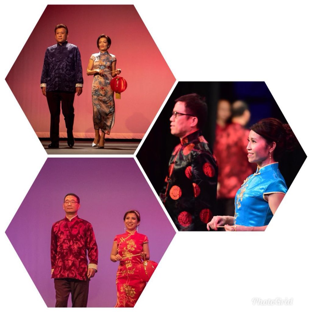 音乐仍在大厅回荡,但见几位帅哥们也身着传统服装友情加盟,他们陪着手提大红灯笼的爱妻走上舞台,那眼神和作派无不在演绎着夫妻情深。各款长旗袍也给妈妈们再添妩媚。这些在职场上挥洒自如的妈妈们曾毫无保留地把时间精力献给了工作、儿女、家庭,如今身着一袭华丽的旗袍,足蹬久违的高跟鞋,扮上精致的妆容,不但重新绽放昔日的青春靓丽,且多了几分岁月和经历中沉淀下来的自信和从容。可以说,上个世纪三十年代,中国女性让旗袍在世界家喻户晓,如今,华盟的精致女性身着旗袍让奥村记住了她们。“精致”二字其实是表达她们对家人、工作、生活的热爱和追求:精益求精,永不言止!舞台上那婀娜多姿的身影、洋溢着幸福的笑脸,还有手中的七彩绢伞都仿佛述说着她们各自精彩的人生… … 她们,的确是华盟的一线品牌,奥城的一道风景!
