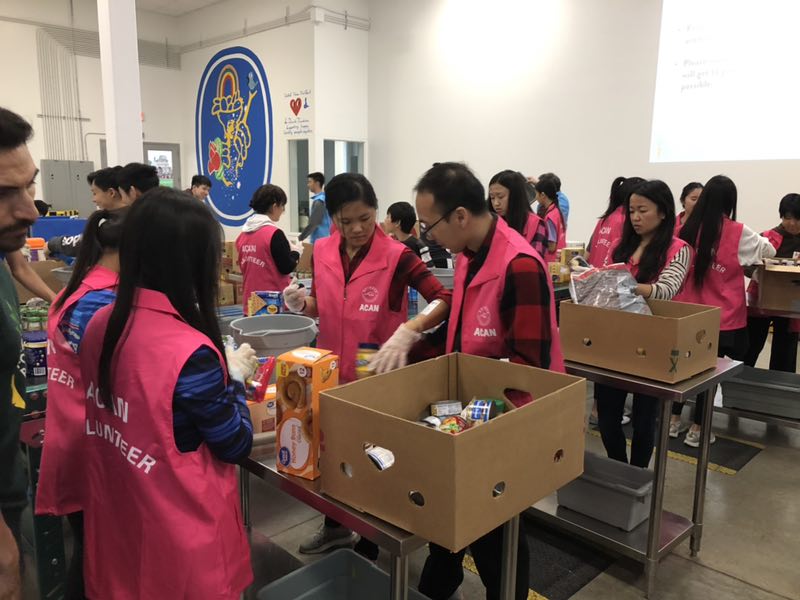 2019年4月13日,奥斯汀华裔联盟ACAN的60多位志愿者在理事刘炜和CJ的带领下,又一次来到德州食物仓库Central Texas Food Bank,进行义务劳动。这次参加的志愿者最小只有八岁,大多数是初、高中学生。经过近三个小时的紧张劳动,大家清理了数百箱罐头食品。堆成山的罐头被迅速清理分装到了纸箱里整齐打包装箱,像变魔术一样被大家清理干净。