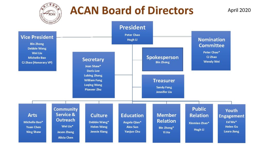 • 主席:新苗(WeChat ID:新苗;email:ACAN.Comm@ACANtx.org